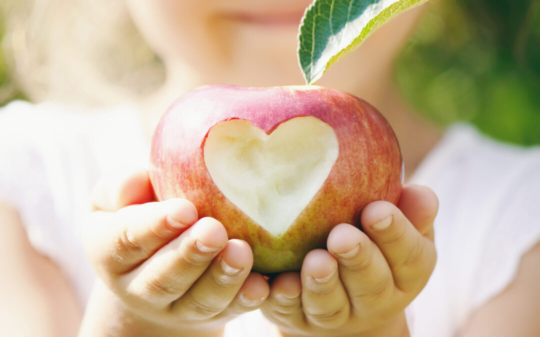 Child with Child with an apple. Selective focus.